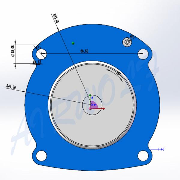 The pulse valve diaphragm is a high-quality rubber diaphragm which is provided with a rivet head for sealing the air outlet of the compressed air duct or the plugging valve, a venting relief hole and a bolt hole for fixing the support. It is the key control component in the electromagnetic pulse valve.
